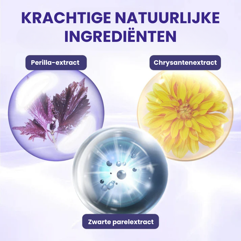 De formule bevat zwarte parelextract, Perilla-extract, extract van Wilde Chrysant en tea tree olie, die allemaal bekend staan om hun verhelderende en huidherstellende eigenschappen.