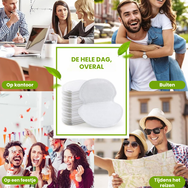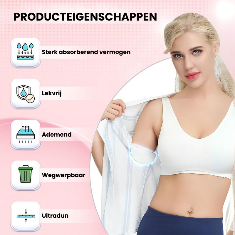 In tegenstelling tot omvangrijke inlegstukken of ongemakkelijke lagen zijn deze pads ultradun en discreet. Ze blijven gemakkelijk aan de binnenkant van je kleding zitten en absorberen zweet en geur. Geen gênante vlekken of doorweekte shirts meer. Alleen droge, schone comfort zodat jij je kunt richten op wat echt telt.