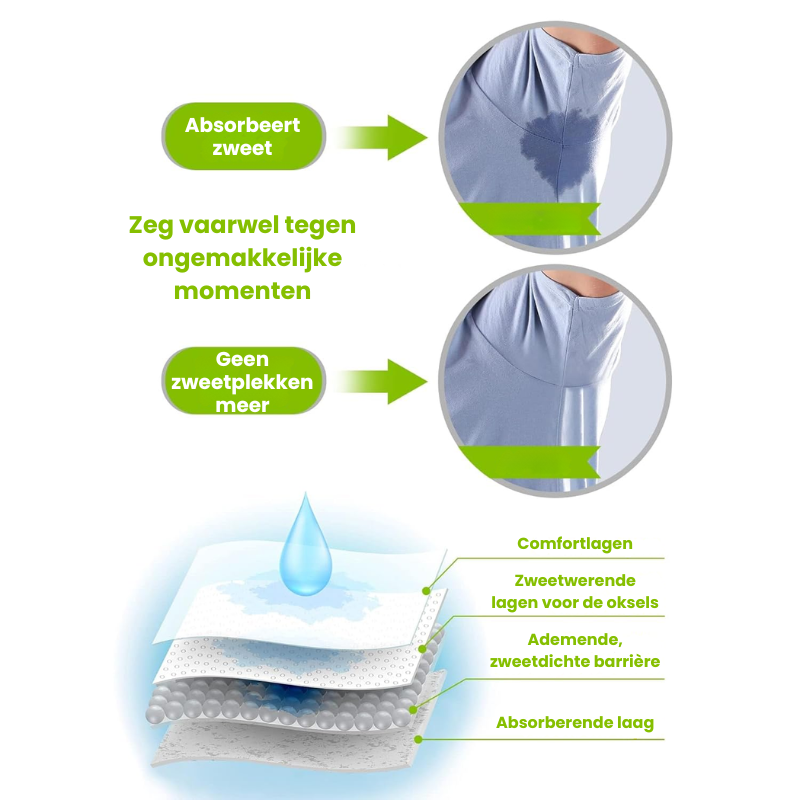 Absorbeert direct zweet: Houdt je oksels de hele dag droog en fris