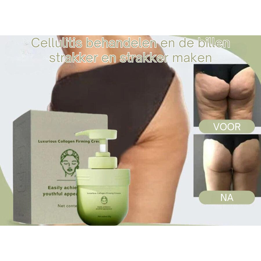 Naast snelle gewichtstoename of -afname, zwaar alcoholgebruik en late nachten, gebrek aan beweging en een zittende levensstijl, kan een toename van vrouwelijke hormonen leiden tot cellulitis, zelfs met een gezond dieet en lichaamsbeweging. FIRMIVORA™ Collageen Verstevigende Crème Het collageen dat het bevat, helpt cellulitis te elimineren door een snelle celstofwisseling van de huid te bevorderen, het oestrogeenniveau in het lichaam in balans te brengen en de lichaamseigen collageenproductie te stimuleren, terwijl het striae vermindert en de elasticiteit van de huid verbetert. Je kunt je billen liften en verstevigen terwijl je geniet van de voordelen van een natuurlijke crème.