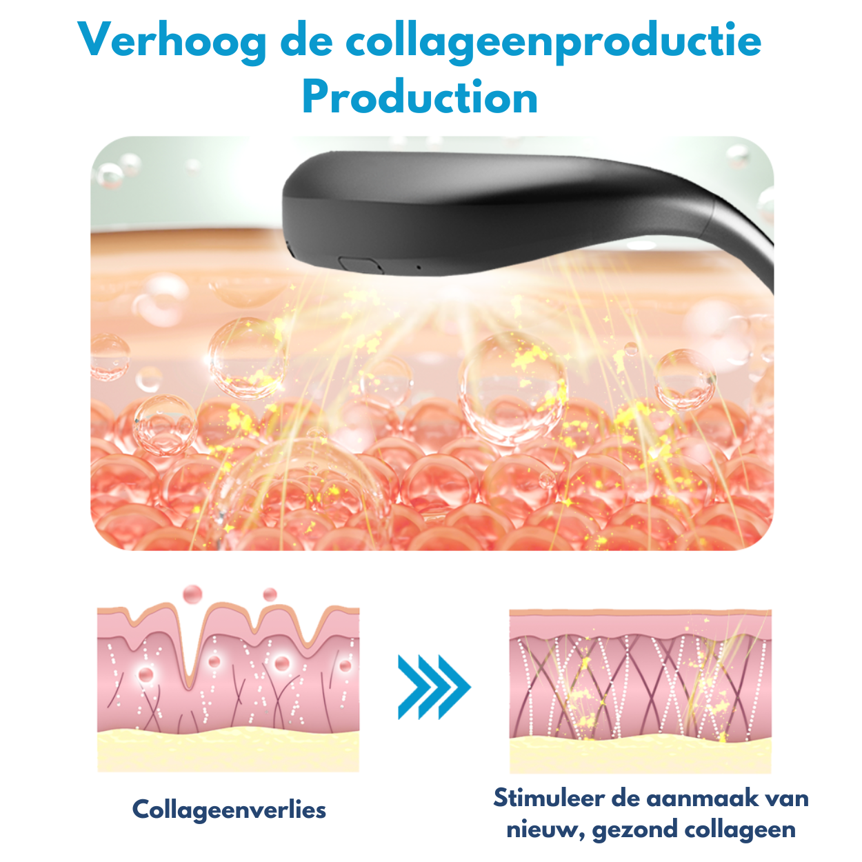 Ons FynFace™ Kaaklijn Liftend Apparaat kan helpen om de collageenproductie in de huid te stimuleren door het onderliggende spierweefsel te activeren. Dit wordt bereikt door elektrische impulsen naar de spieren onder de huid te sturen, waardoor ze samentrekken en ontspannen. Deze herhaalde spierbeweging verhoogt de bloedcirculatie in het gebied, wat de collageenproductie kan stimuleren. Daarnaast kunnen de elektrische stromen helpen om oude collageenvezels af te breken, wat de aanmaak van nieuw, gezond collageen bevordert.