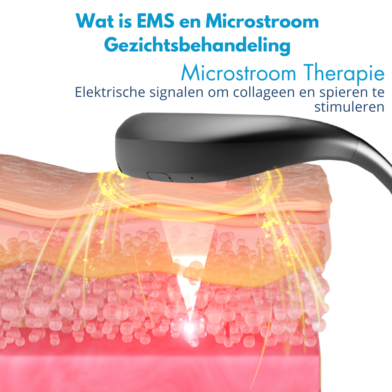 EMS is een vorm van therapie die spieren stimuleert, spiergroei bevordert, kracht en herstel ondersteunt. Het werkt door elektrische impulsen te sturen via elektroden die op de huid worden geplaatst bij de gerichte spieren. Deze impulsen zorgen ervoor dat de spieren samentrekken, wat het natuurlijke proces van spierbeweging nabootst. Microstroom facials zijn een populaire huidtherapie voor het liften en verstevigen van het gezicht. Het is een niet-invasieve cosmetische behandeling die EMS-stromen gebruikt om het collageen en de spieren van het gezicht, de nek en de kaaklijn te stimuleren. Dit helpt om de gezichtscontouren te verbeteren en rimpels te verminderen.