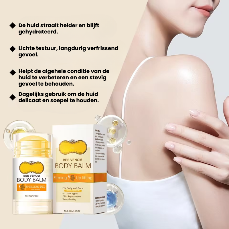 Deze balsem combineert een huidverstevigende essentie met een verkoelende massagestart om de circulatie te stimuleren en de huidelasticiteit te ondersteunen. Het bijengifcomplex helpt de huid zichtbaar te verstevigen, de textuur te verbeteren en de hydratatie te verhogen. Ontworpen om zonder rommel te gebruiken en reisvriendelijk, is het het perfecte hulpmiddel voor dagelijkse huidverzorging en zelfzorgroutine.