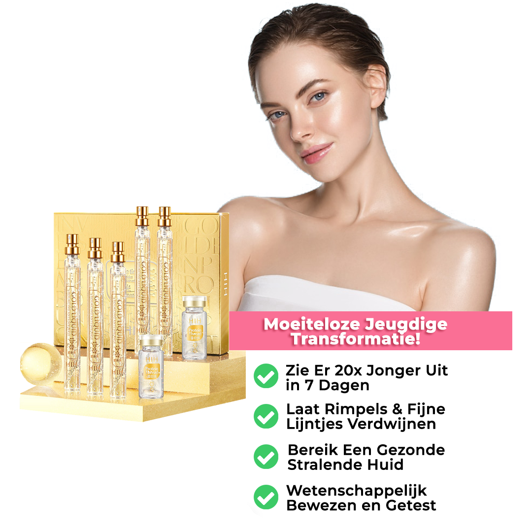 Dit is NIET je typische huidverzorgingsproduct. Maak kennis met een revolutionaire, wetenschappelijk bewezen en geteste formule die de kracht van 24K goud en proteïne collageen combineert om je huid te liften en revitaliseren.