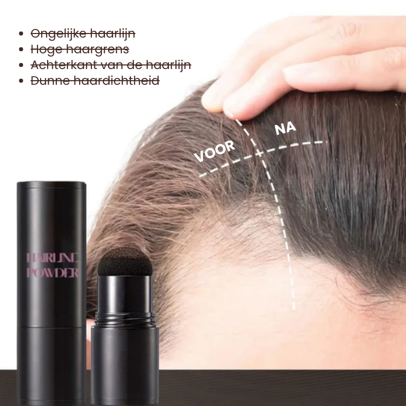 Helemaal niet! Onze haarlijnpoeder is lichtgewicht en ademend, zodat u zich comfortabel en onbezwaard voelt en er altijd natuurlijk uitziet.
