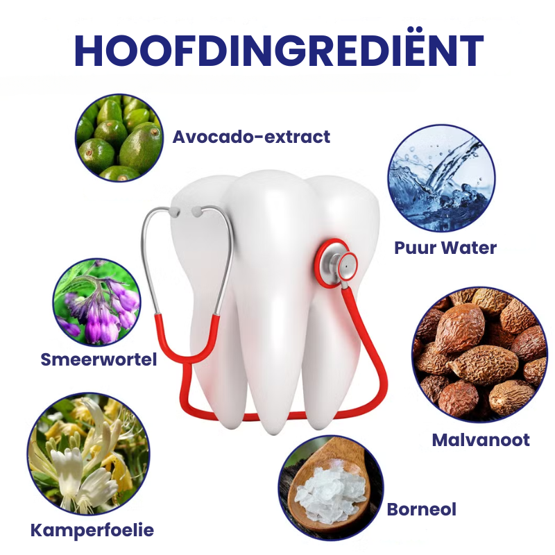 Avocado-extract: bevat krachtige antioxidanten en ontstekingsremmende stoffen die helpen om tandvleeszwelling en -gevoeligheid te verminderen. Het levert ook essentiële voedingsstoffen die de algehele mondgezondheid ondersteunen.