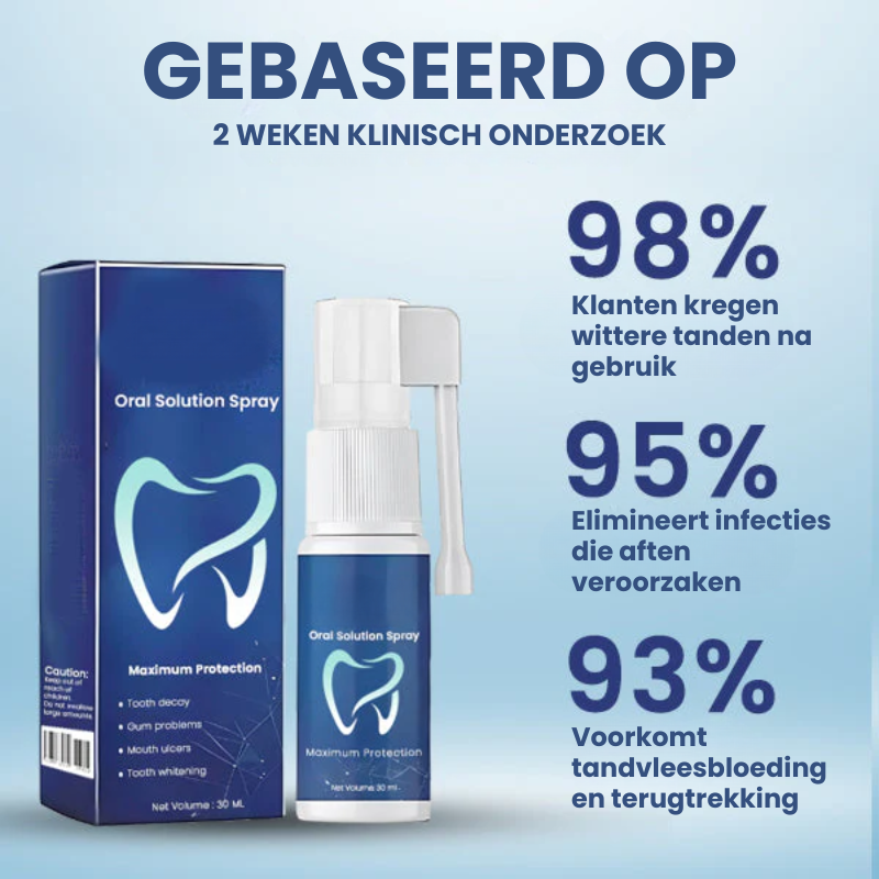 Ben je het zat om te worstelen met een slechte adem, tandbederf, tandvleesproblemen en een droge mond? Deze geavanceerde mondverzorgingsformule is ontworpen om je de gezondste, frisste mond ooit te geven. De spray werkt snel en biedt langdurige bescherming tegen bacteriën, terwijl het de algehele mondhygiëne bevordert.