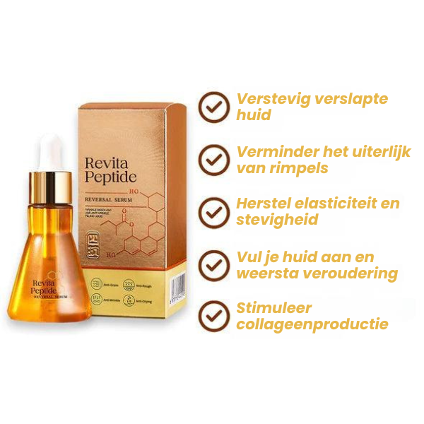 Zonder chirurgie te ondergaan. Het bestrijden van fijne lijntjes, rimpels en hyperpigmentatie hoeft niet duur en invasief te zijn. Het RevitaPeptide Reversal Serum bevat geconcentreerde actieve ingrediënten die de zichtbare tekenen van veroudering verbeteren, waardoor je huid er steviger, voller en jonger uitziet.