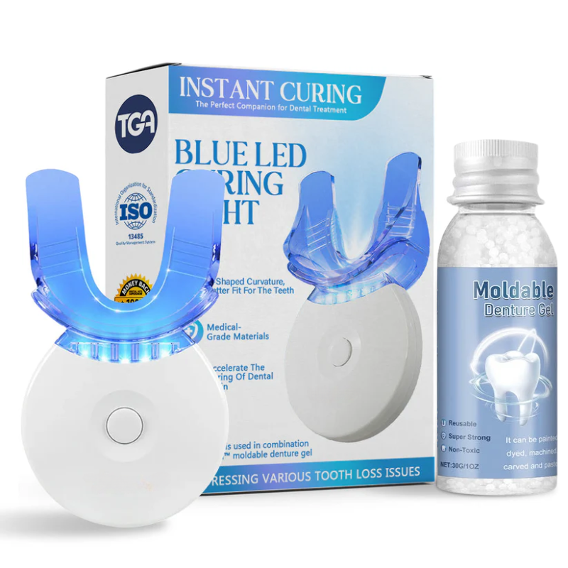 Bent u het zat om u onzeker te voelen over gaten of ontbrekende tanden? Nu kunt u uw glimlach moeiteloos herstellen. De blauwe lichtuithardingslamp en kneedbare prothesegel bieden een snelle en eenvoudige oplossing, die u helpt gaten te vullen en ontbrekende tanden binnen enkele minuten te repareren. Geniet van een zelfverzekerde en natuurlijk ogende glimlach vanuit het comfort van uw eigen huis.